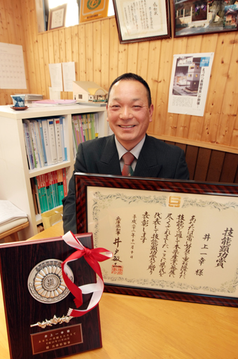 同賞は15年以上の従事経験がある技能優秀な35歳以上が対象。「建築・土木」部門の今年度受賞者は井上さんを含めて5人。