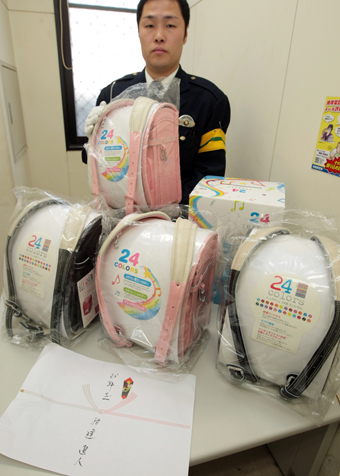 置かれていたランドセルは黒とピンク各2個で、いずれも新品とみられる。一つずつ箱が包装され、表面に「お年玉 伊達直人」と筆書きした紅白ののし紙。玄関に向かって右側の駐車スペースに4箱並んでいた。午前9時半の巡回時はなかったという。
