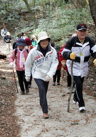 ルートのほとんどは圭介が歩いた当時のまま。参加者らは急坂や倒木に苦労しながらゴールを目指した。