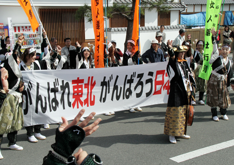 被災地に向けてエールを送った春の義士祭