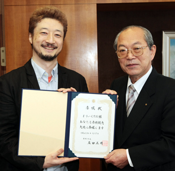 もりいさんは同日、豆田正明市長から「赤穂観光大使」を委嘱。「こんなワタシでいいんですか」と恐縮しつつ、「“江戸詰め”として赤穂のPRに精一杯尽くしたい」と笑顔で話していた。