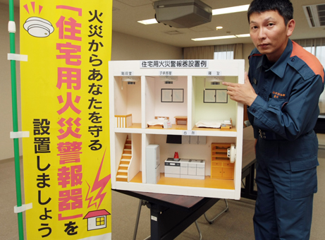 なお、火災警報器を法外な値段で販売したり、「消防署」を名乗って無理矢理売り付けたりする悪質な訪問販売が全国各地で発生しており、市消防本部は「消防署員が販売、斡旋することは絶対にないので、だまされないで」と注意を呼びかけている。