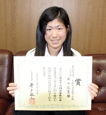 兵庫県小中学生書写コンクールで県知事賞の井上琴葉さん