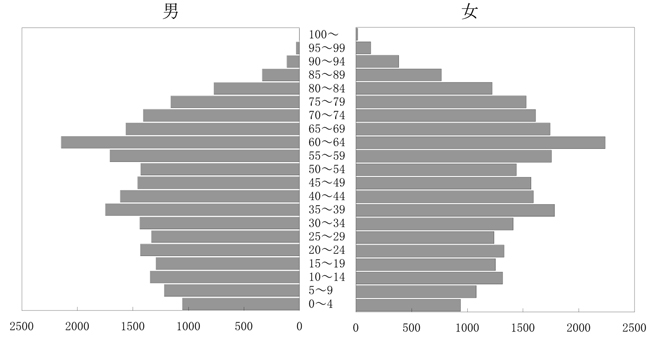 平成23年3月末時点の赤穂市の人口ピラミッド