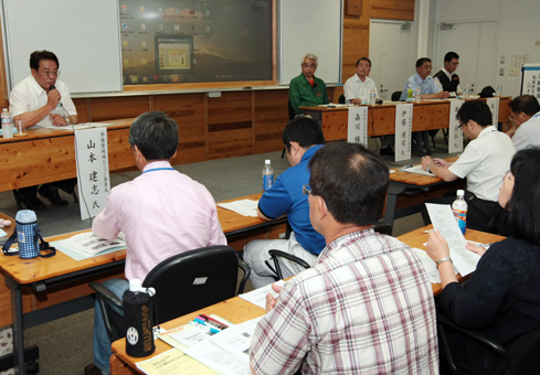 初回のこの日は受講者同士の自己紹介後、庵逧典章・佐用町長が「今後のめざすべき地域活動について〜防災リーダーに期待すること」と題して講演。平成21年台風9号水害の経験を話した上で、「災害対応には行政だけでは人材に限界があり、それぞれの地域で判断能力のあるリーダーが必要」と述べ、「地域防災は特別な人たちだけの役割ではない。みなさんの取り組みが地域を救うことにつながる」と激励した。