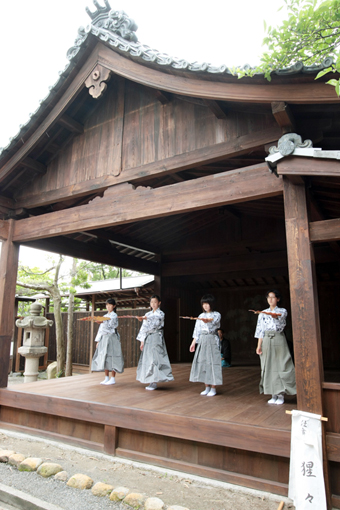 会場となった能舞台は昭和24年に伊丹市の酒造会社「小西酒造」から同神社に移築されたもの。長年使われていなかったが、「伝統文化を継承する拠点として復活させては」(江崎さん)との勧めもあり、同神社が今秋竣工に向けて修復中。舞台そのものは整ったため、特別に発表会場として使用した。