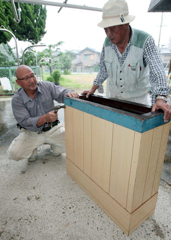 掃除用具箱の修繕などを行う土建一般労働組合赤穂支部の組合員