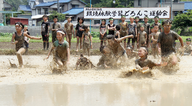 水田の中を全身泥まみれになって走り回った「どろんこ運動会」