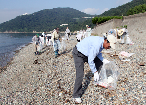 丸山海岸で清掃奉仕する赤穂市シルバー人材センターのみなさん