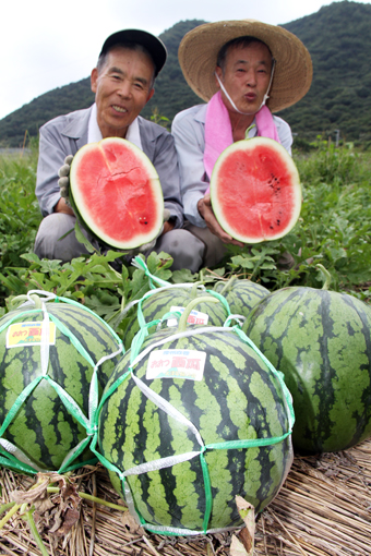 スイカ、ダイコンなど地場産作物のブランド化を目指す「大津年輪の会」(旧林茂存会長、14人)がまちおこしとして開催して4回目。昨年は開始後15分で完売したため、今年は作付面積を2割増やした。当日は約300玉を出荷できる見込みだ。
