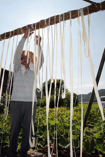 開催協力するために30数年ぶりに自宅畑でかんぴょうを栽培した木津の中田義弘さん(68)は「煮たときに柔らかく、味の浸透がよいのが特長。地物のよさを味わってほしい」と話している。