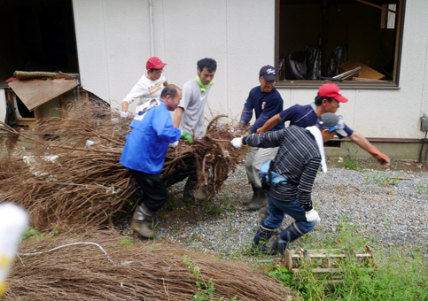 活動初日は島西部の田尻地区で水田に残るがれきを撤去。2日目は磯草地区で津波に襲われた建物内の片付けなどを行った。震災から半年の11日は午後2時46分にサイレンが響き、作業の手を止めて黙祷を捧げた。