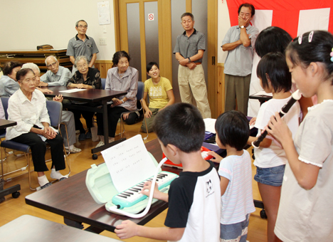 子どもたちの楽器演奏などでお年寄りをもてなした敬老会