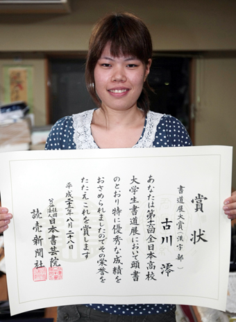 全日本高校・大学生書道展で大賞に輝いた古川澪さん