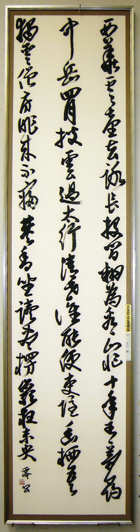 受賞作は聯落(縦135センチ、幅53センチ)に揮毫した七言律詩「大道寺の壁に書す」。何度も書き続けるうちに最初は恐る恐るだった運筆に勢いが生まれ、流麗な作に仕上がった。