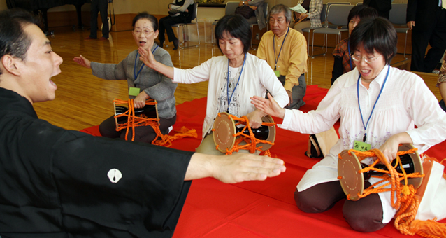 伝統芸能への興味関心を高めようと行われた「能楽囃子ワークショップ」
