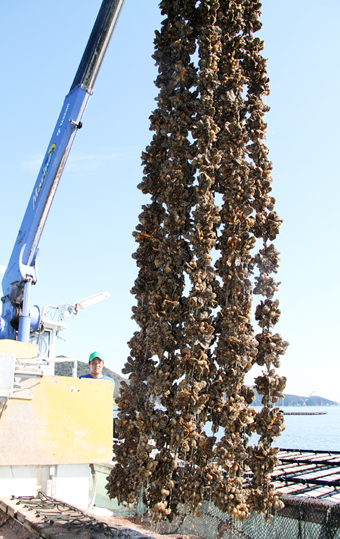 坂越湾でカキの水揚げ始まる