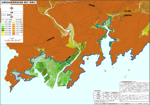 兵庫県が公表した赤穂市域の「津波被害警戒区域図(暫定版)」