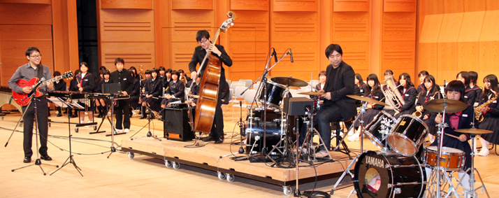 プロの演奏家と中学生が共演したジャズのワークショップ