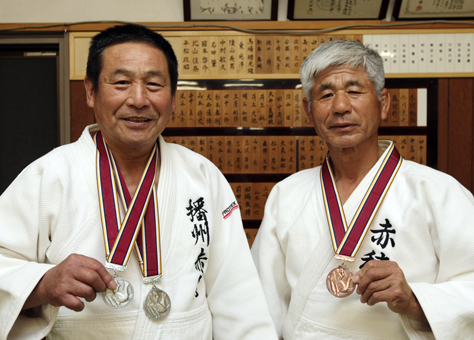 日本マスターズ柔道でメダルを獲得した池田正男選手(左)と馬場猪虎雄選手