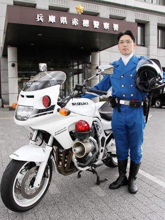 赤穂シティマラソンで先導役を務める藤田賢二巡査長