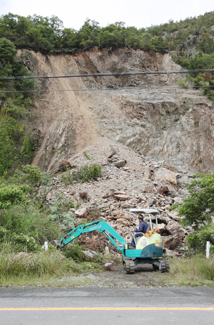 復旧作業が進む崩落現場=5月25日午前9時45分