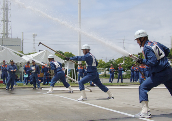 本大会は平成18年度より、水を出さない「空操法」から実戦に近い状態の「水出し操法」に競技方法を変更。各分団の精鋭5人が順番に競技し、放水までの行動、動作、チームワークなどを減点方式で審査した。