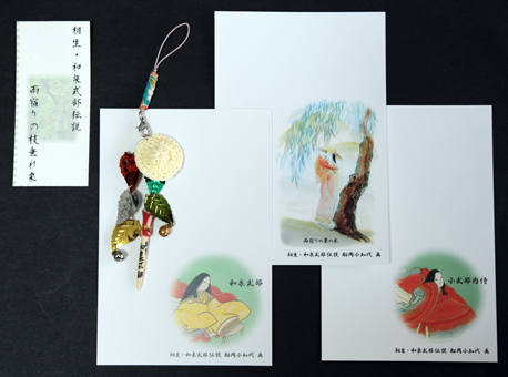 相生の和泉式部伝説を基にしたストラップとポストカード