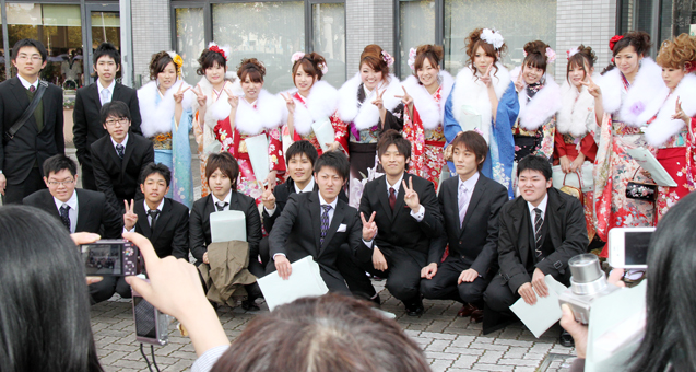 記念撮影をする新成人たち