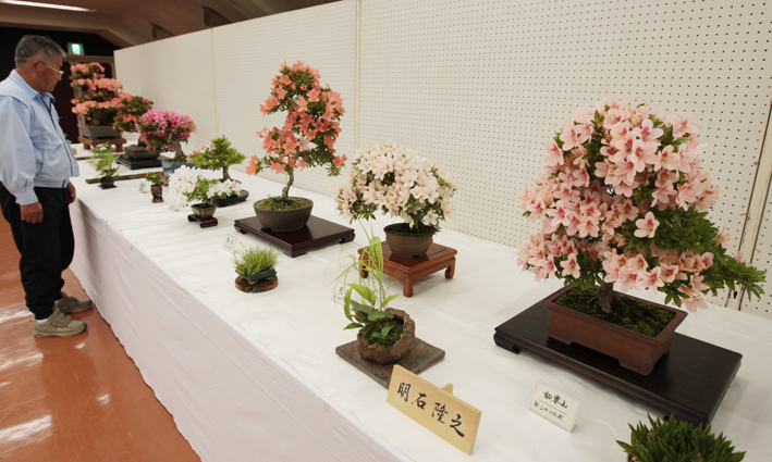 約15人がサツキ約35点、山野草約100点を出品。1階大会議室で午前9時〜午後5時。出品者は次のみなさん。敬称略。