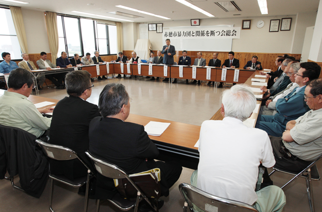 冒頭のあいさつで藤野高之会長は「旧来の暴力団はほぼ壊滅に追い込めたが、新たな組事務所が発生している」と危機感を強め、「暴力団の実態を知り、一致団結して対抗しよう」と呼びかけた。