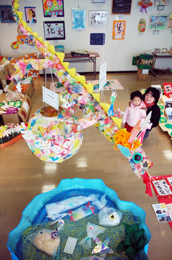 一年間の総まとめとして児童生徒74人が陶芸、習字など約200点を出品。感性豊かな力作が並ぶ。