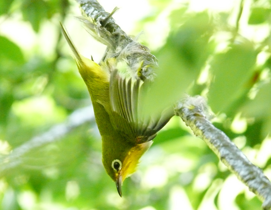 犯人が仕掛けたわなに掛かり、もがいているメジロ=読者提供