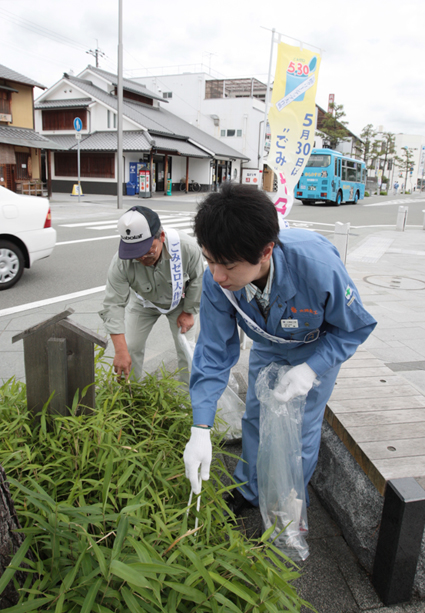 各事業所周辺でも、従業員が清掃奉仕。同会議所環境衛生委員会の横山正明委員長は「まちをきれいにしようという意識啓発につながれば」。参加した会社員の片山敬弘さん(41)は「掃除をすると気持ちがいいですね」とすがすがしかった。