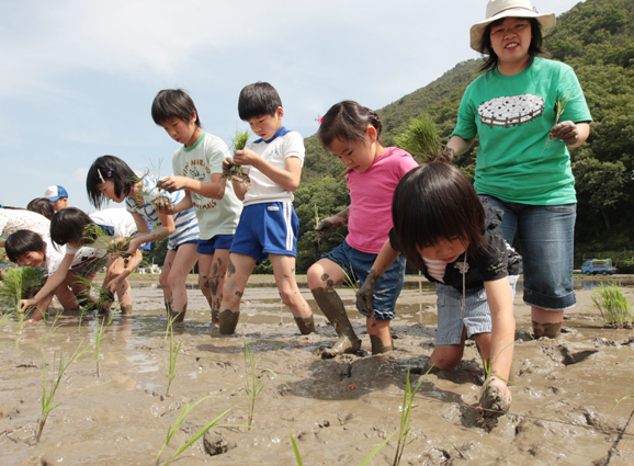 子どもたちが田植え体験