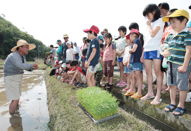 北野中の皆川美久さん(10)は「機械は早いけど、手で植えた方がおいしいお米ができそう」。父親クラブの大田茂会長(47)は「地域の人たちのおかげで、安心して食べられるお米が育っていることを知ってほしい」と話していた。