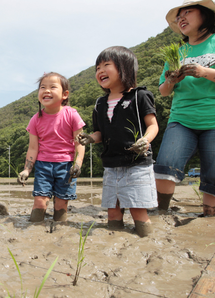 幼稚園児もいっしょに参加した田植え体験