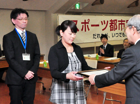 表彰を受けたのは、主婦の糟谷幸子さん(35)=山手町=と市職員の東祐一郎さん(42)=黒崎町=、看護師の藤田和子さん(25)=大阪市北区=。