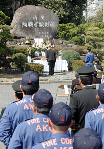 慰霊祭では、市消防団の望月昌次団長が「身命を賭して地域防災に尽くされた、不撓不屈の消防精神は無形の財産として連綿と継承されている」と追悼。豆田正明市長は「尊い犠牲を無にすることなく、想定を超える大災害にも耐える安全・安心なまちづくりに一層努力します」と誓いを述べた。