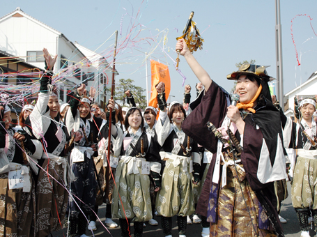 不破数右衛門役で歩いた尾崎の主婦、田渕清子さん(64)は4年前に続き2度目の出演。「前回よりも沿道のお客さんが多く、楽しくパレードできました」と好天に恵まれた祭りを満喫した。