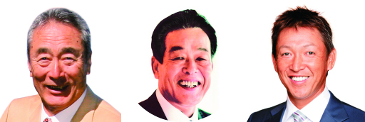 「ドリーム・ベースボール」で来穂する=左から=金田正一氏、村田兆治氏、立浪和義氏
