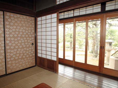 移築から今年でちょうど100年。尾崎家では「できるだけ当初の姿のまま残したい」と板戸、ふすまなどの建具も移築当時のものを大切に使ってきた。かつて酒を染み込ませた布で毎日磨かれたという柱や天井は重厚なつやを出している。決定的な証拠はないものの、これだけの規模の屋敷が大正元年に赤穂から移築された事実を考えると、柴原家住宅をおいて他に考えにくい。