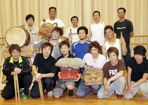 初めて神楽舞を舞う会社員の苅田崇志さん(21)は「足運びが特に難しい。本番までに習得したい」と動作を反復。太鼓を担当する会社員の清原悠介さん(26)は「太鼓が乱れると影響が大きいのでプレッシャーを感じる。しっかり練習します」と血豆ができた手でバチを振るう。