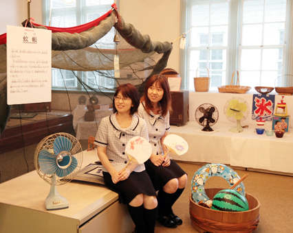 昔懐かしい夏場の家庭用具が並ぶ民俗資料館の収蔵品展