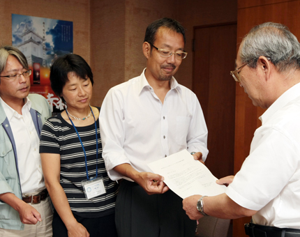 市側は豆田市長と小林環樹・建設経済部長が応対。「まずは原因究明が必要。要望の内容は県にも伝えたい」と約束した。