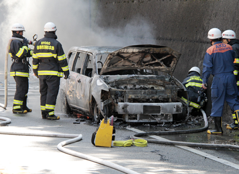 男性が車を路肩に停めた直後に出火。車両を全焼し、約40分後に鎮火した。男性は車外へ逃げて無事だった。