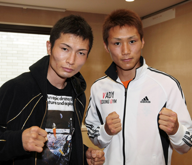 決戦を翌日に控えたチャンピオン・小國以載選手(右)と挑戦者の芹江匡晋選手