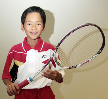 チームメートの福島希真選手(11)=網干小6年=と組んだ今年5月の県予選で4強。代表権を得た。サーブとレシーブの決定率向上に重点を置いて練習に励んでいる。