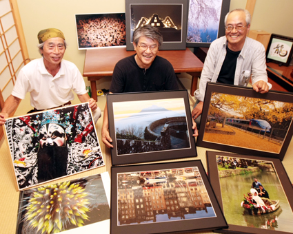 3人とも初めて写真機を手にしたのは15歳のときで半世紀のキャリア。野村さんは構図にこだわって国内外の風景を撮影し、濱本さんは祭り、花など幅広いジャンルに被写体を求める。矢野さんは技巧を駆使してオリジナル性の高い一枚を狙う。