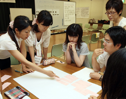 児童生徒のコミュニケーション力や問題を乗り越える力などを養うための指導法、学級づくりをワークショップを通して体験。具体的な活用方法の習得に取り組んだ。